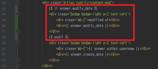 먼저 question_detail.html 에서 답글의 수정버튼 옆에 삭제 버튼을 추가해준다. 게시글 삭제와 마찬가지로 href 를