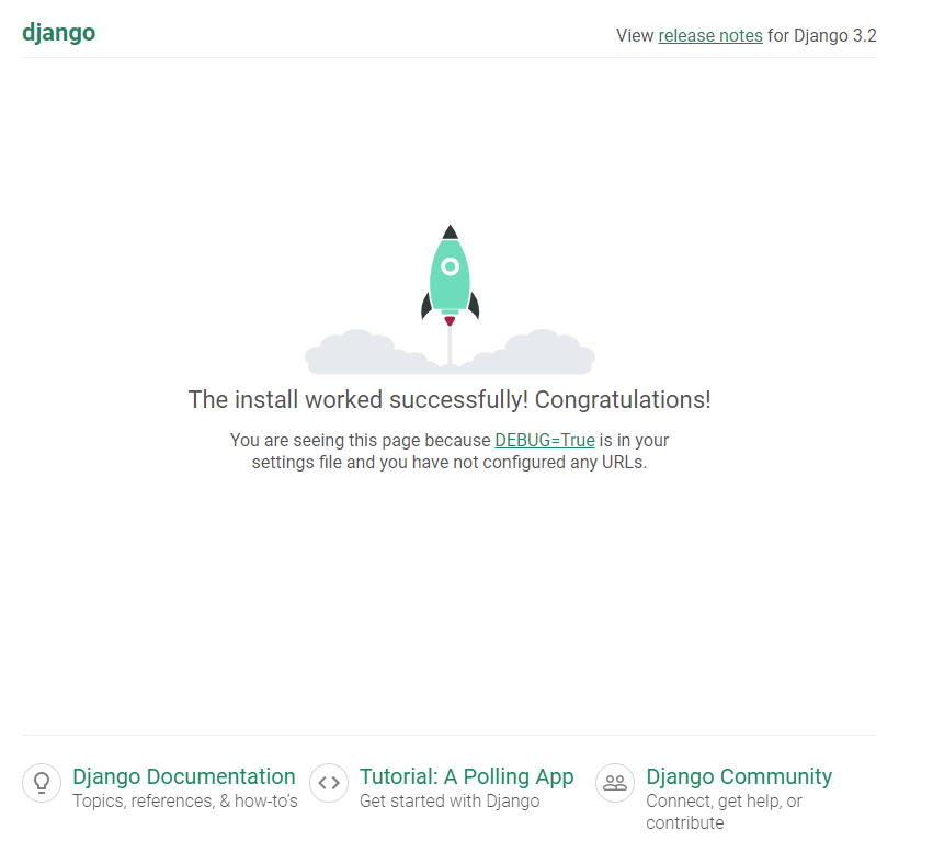 여기까지 오면 서버를 구동시킬 수 있다. 물론 아직 배포단계가 아닌 개발단계이기에 로컬호스트(127.0.0.1)로만 접속 가능한 상태이다. 브라우저의 url창에 localhost:8000 또는 127.0.0.1:8000 을 입력하여 서버에 접속하면 위와 같은 화면을 볼 수 있다. 서버를 종료하고 싶으면 명령 프롬프트에서 Ctrl+C 를 입력하여 종료시킬 수 있다.