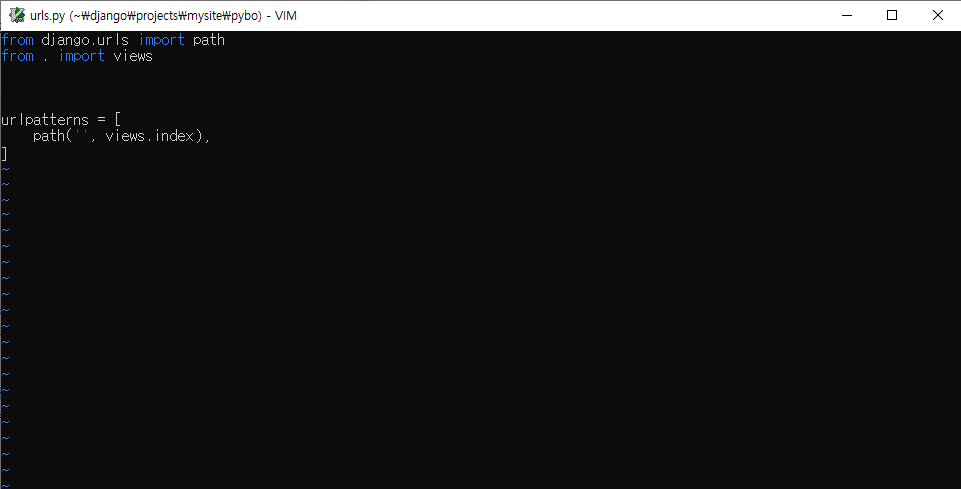이와같이 수정하면 localhost:8000/pybo/ 가 요청되었을 때 pybo\views.py 에 정의된 index 메소드를 실행하게된다.