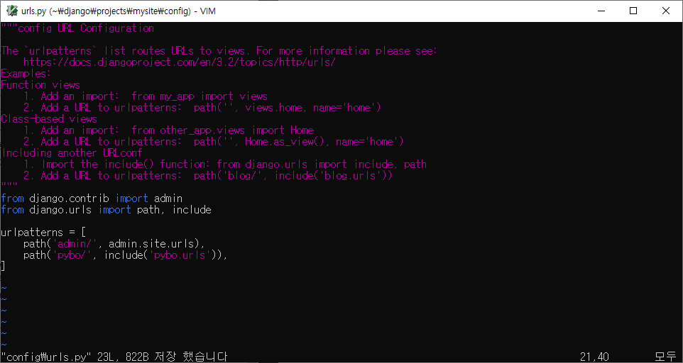 config\urls.py 파일을 열어 다음과 같이 수정한다.