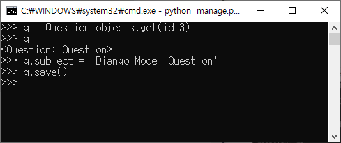 드디어 모델을 사용하기 위한 준비가 끝났다. 이제 django 쉘을 실행하여 직접 모델의 인스턴스를 생성하고 데이터베이스에 저장, 조회하는 작업을 해보자.