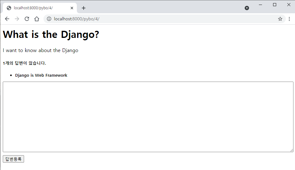다시 웹 페이지에 접속해보면 위와 같이 텍스트 영역의 너비가 창 크기 전체를 차지하고 답변등록 버튼과
