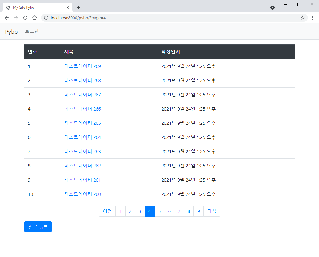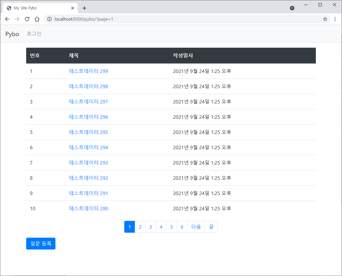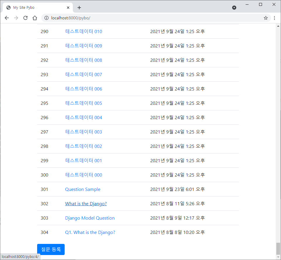 다시 사이트에 접속해보면 추가된 300개의 데이터가 모두 한 페이지에 표시되는 것을 볼 수 있다.