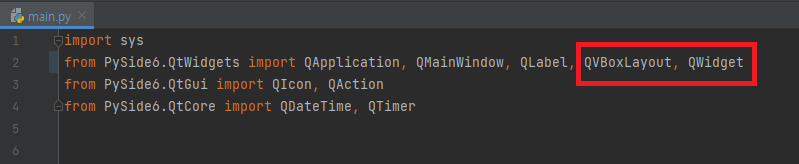 먼저 QVBoxLayout, QWidget 을 import 해주자.