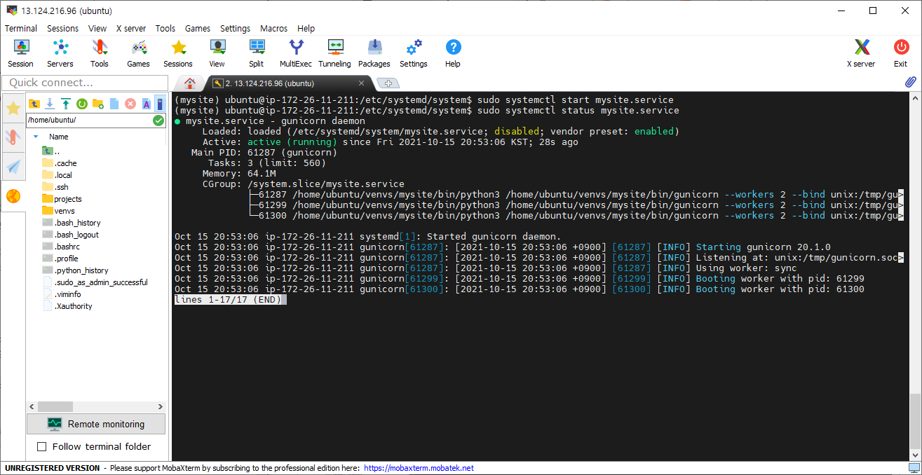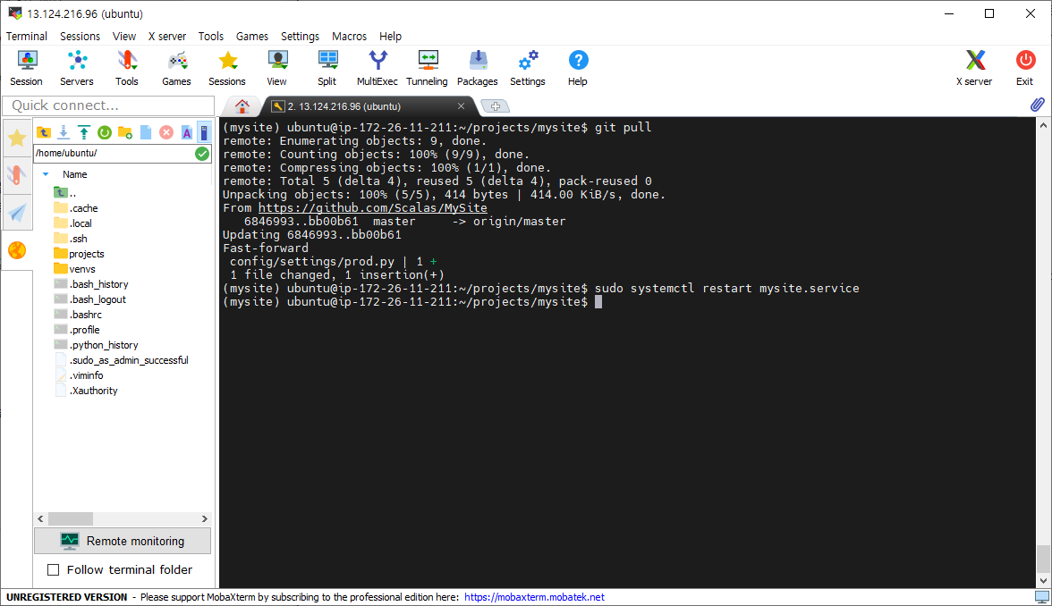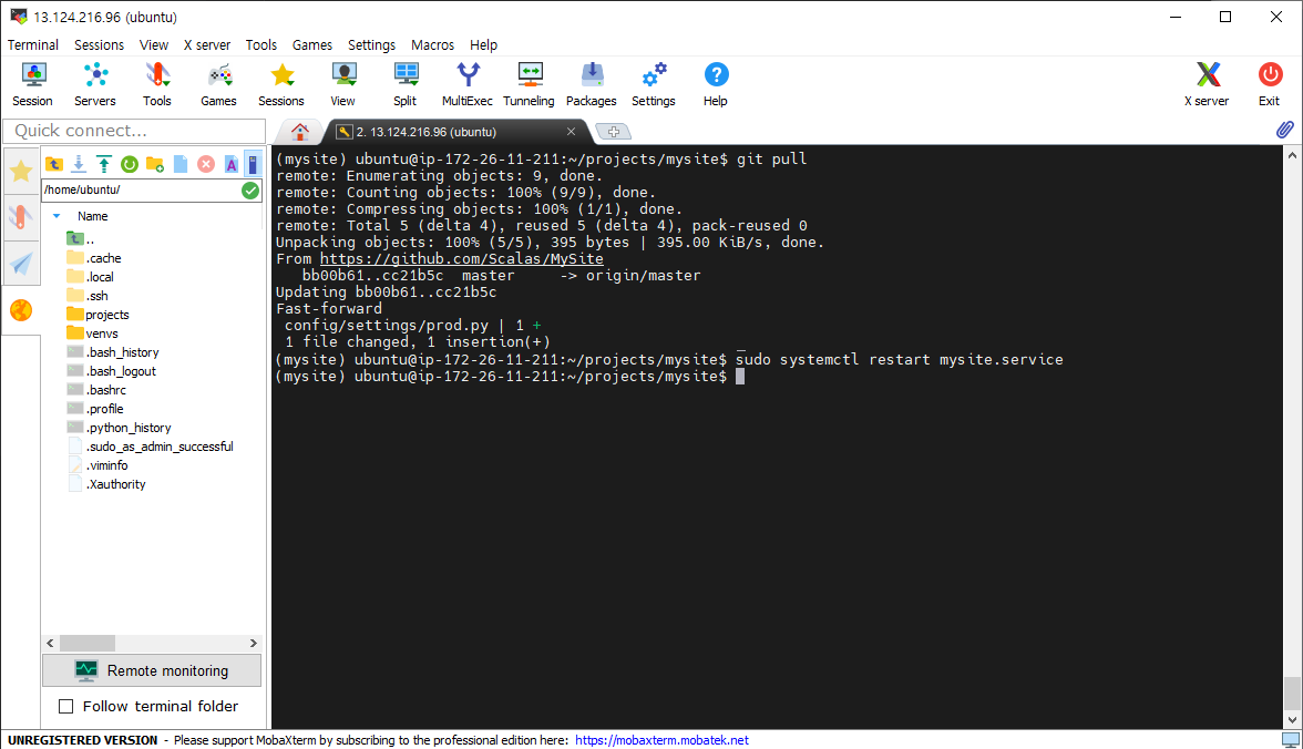 마지막으로 loggers 의 django 로거에 file 핸들러를 등록해주고 commit, push 한뒤 서버에 반영해준다.