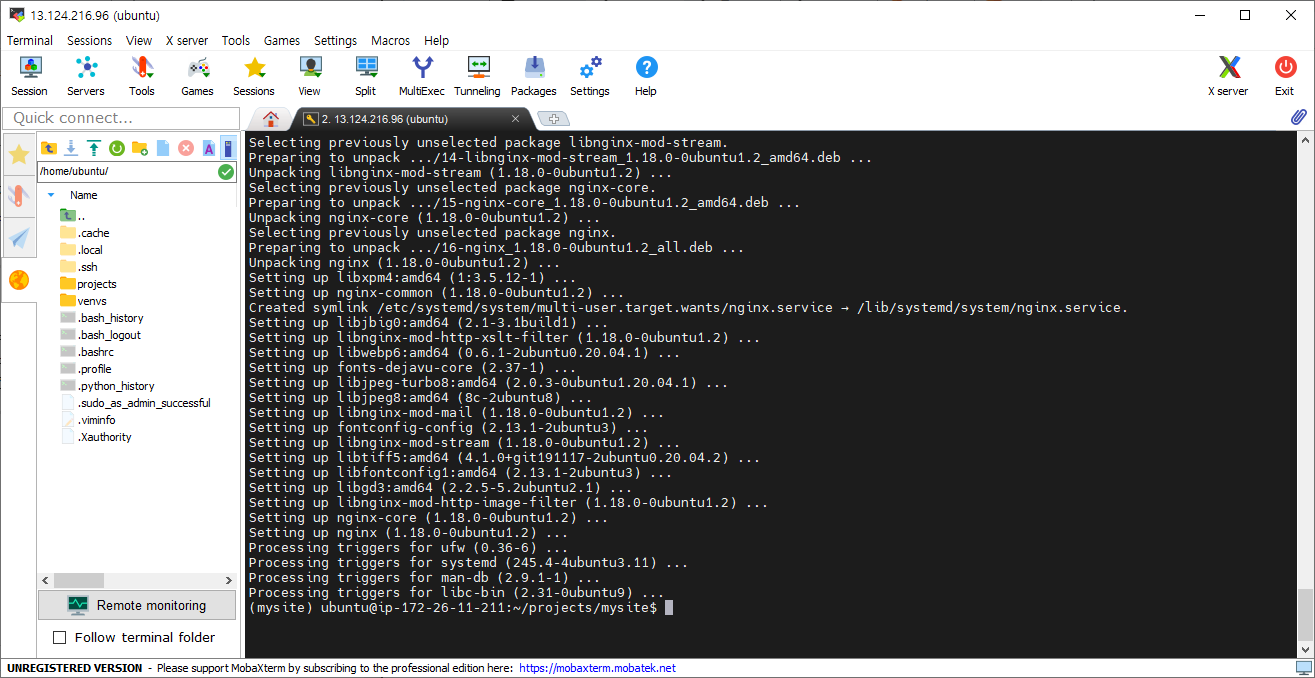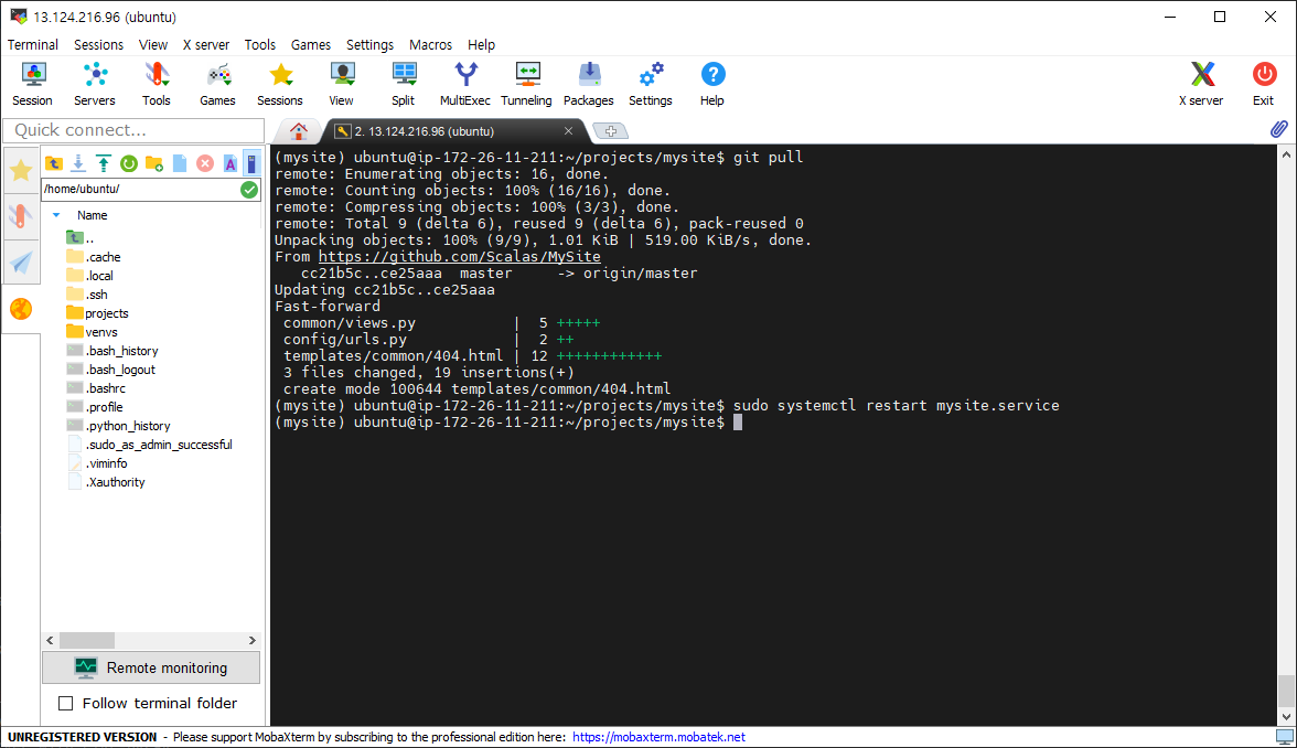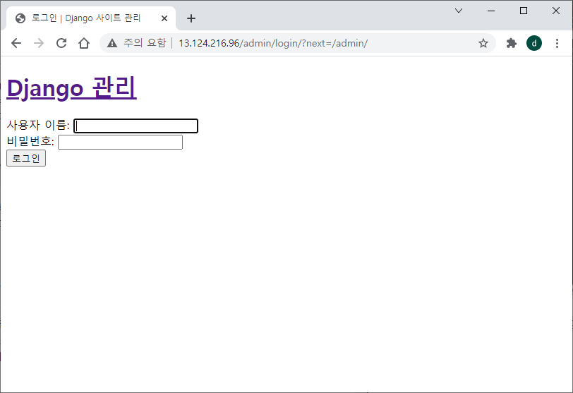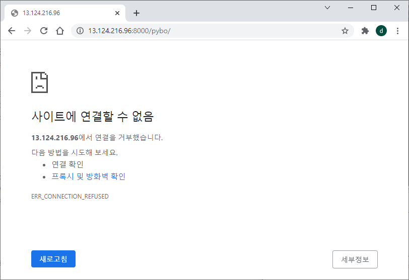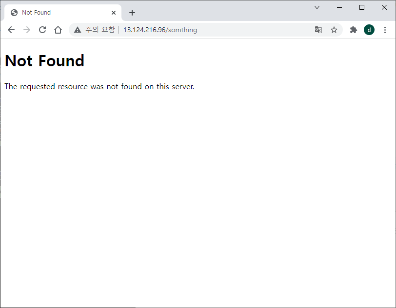이제 일부러 에러가 발생할 코드를 삽입하여 서버에 반영한 뒤 서버에 접속해보자