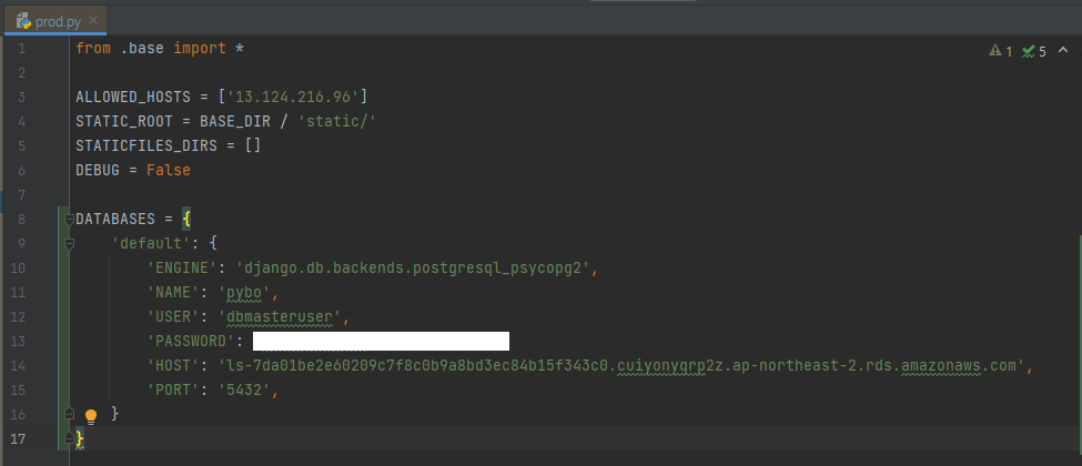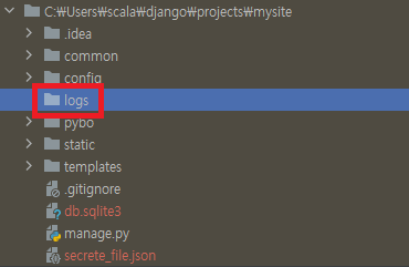 또한, 서버환경과 로컬환경 모두에서 로그가 저장될 logs 디렉토리를 생성해줘야한다. 로컬 환경에서는 DEBUG 값이