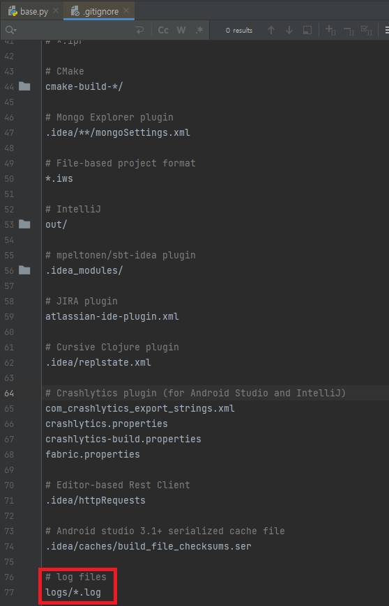 로그파일이 버전관리의 대상이 되지 않도록 gitignore 에 추가해준다.