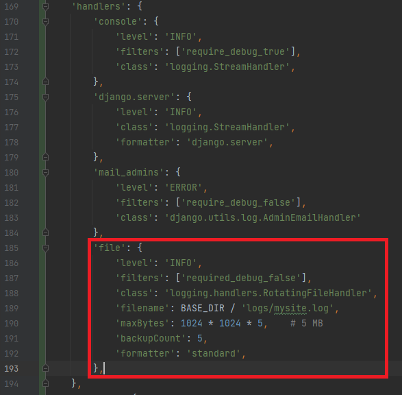 handlers 에 파일에 로그를 저장할 핸들러인 file 을 추가해준다.