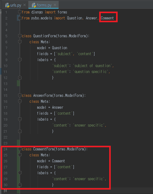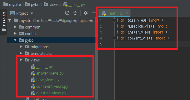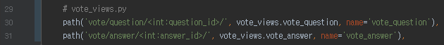 아직 생성하진 않았지만 뷰 함수인 vote_question 이 정의될 vote_views.py 파일의 import 문을 작성하고 vote_views.py