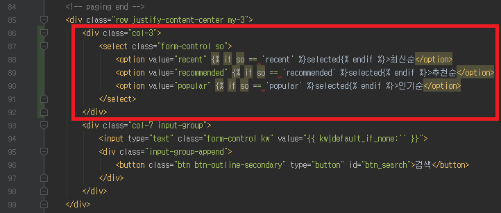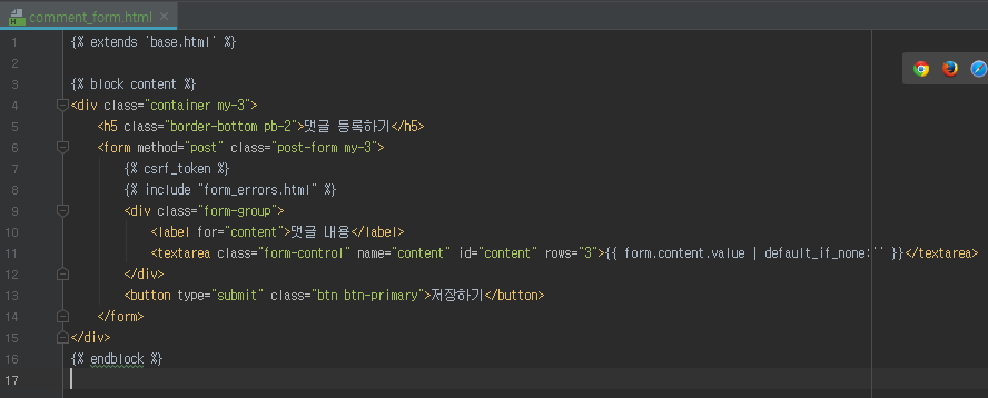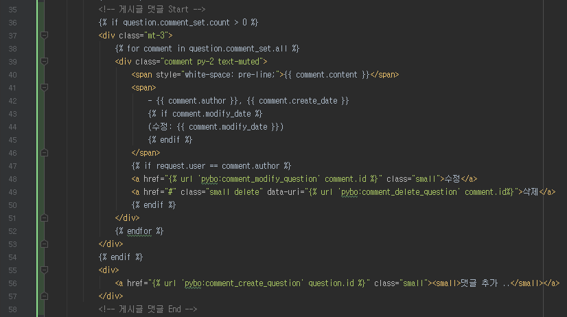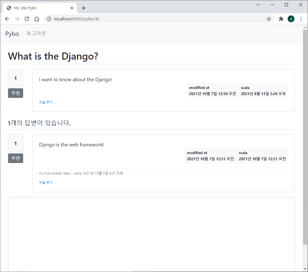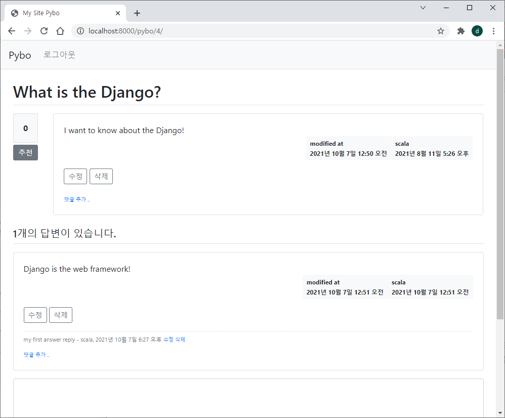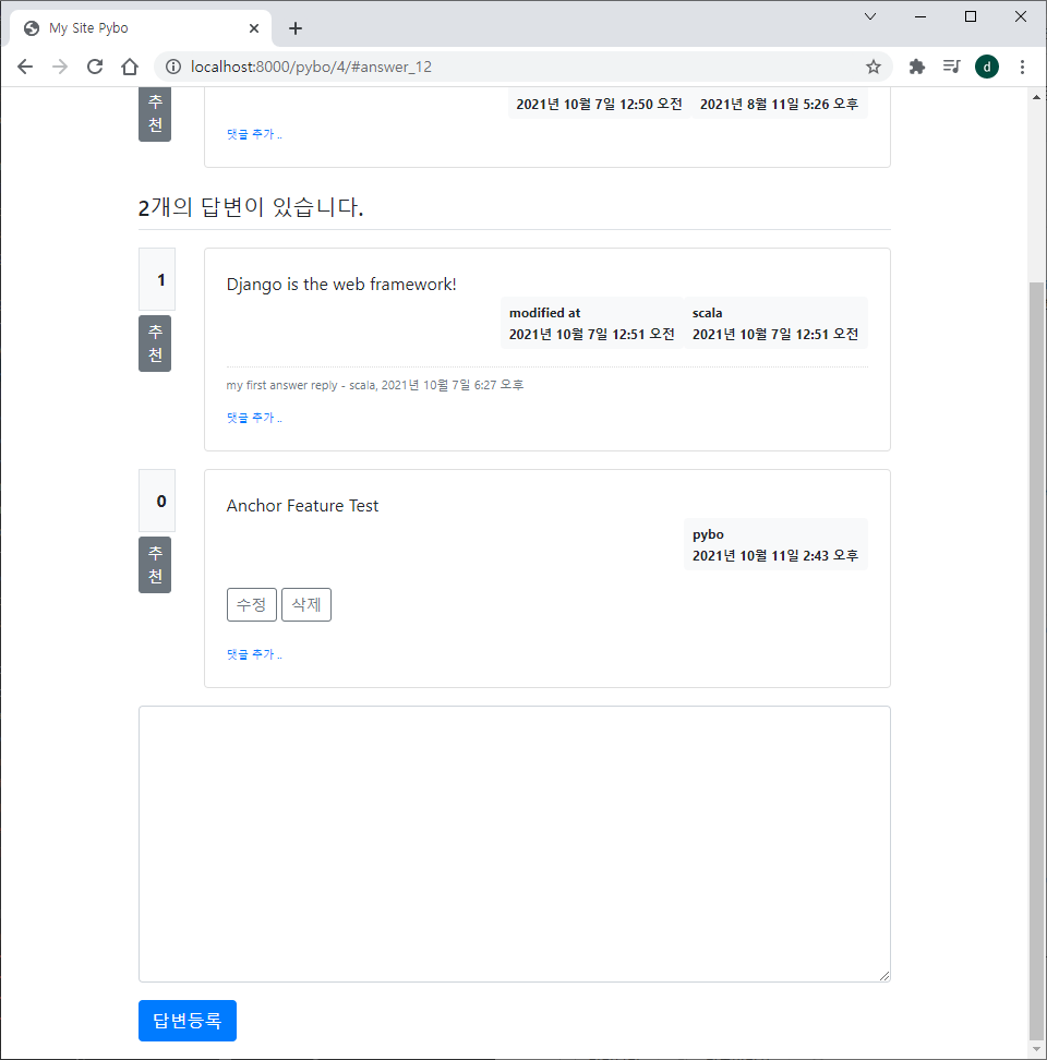 모델의 수정은 이미 게시글 추천을 구현할 때 마쳐두었기 때문에 바로 추천 영역을 만들어준다. 게시글 때와 완전히