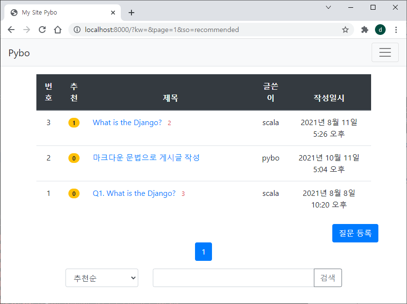 게시글 목록 페이지에서도 추천수가 표시되도록 수정해보자.