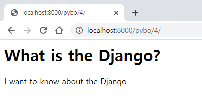 pybo\urls.py 를 위와 같이 수정한다. pybo/{question_id} 형태의 url에 대해 pybo\views.py의 detail 메소드를 매핑한 것이다.