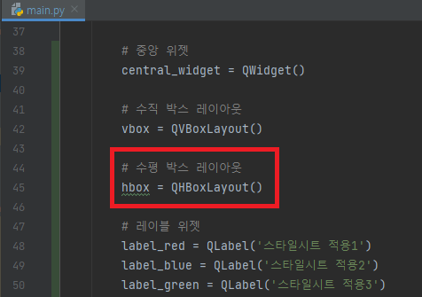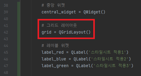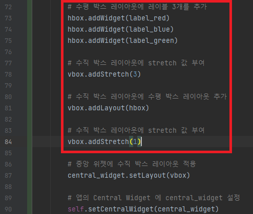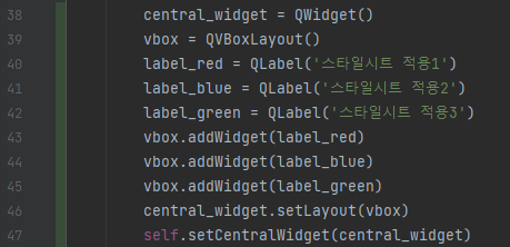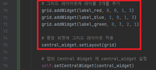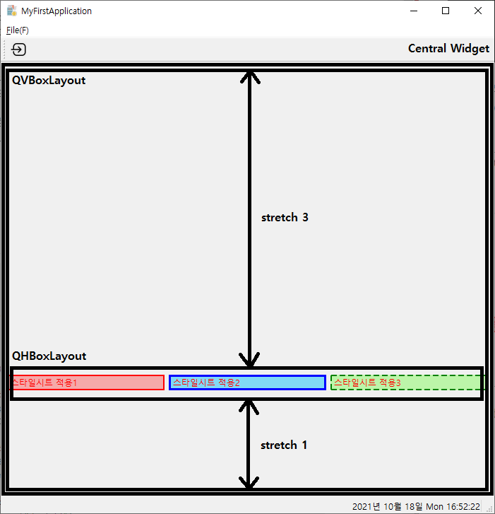 Central Widgets 영역에는 우리가 원하는 어떤 위젯이든 위치시킬 수 있다.