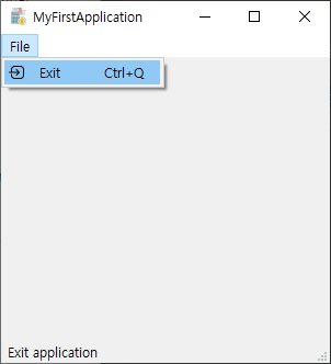 액션 실행시 MyApp이 종료되도록 해준다. 마지막으로 addAction 을 호출하여 파일메뉴에 액션을 등록해준다.