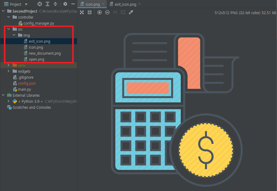종료액션을 나타낼 아이콘이미지를 구해서 exit_icon.png 로 src/img/ 디렉토리에 저장하고 QIcon 클래스로